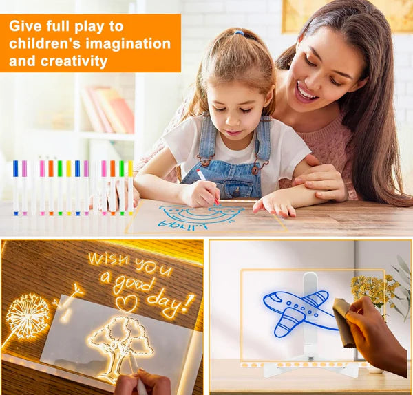 🔹 Tablero de dibujo acrílico transparente con 7 bolígrafos de colores